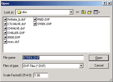 The Open DXF imports an AutoCAD Release 13 compatible DXF file into Advantech WebAccess/SCADA. The DXF File becomes fully editable. Only lines are imported, no colors, no blocks are imported.