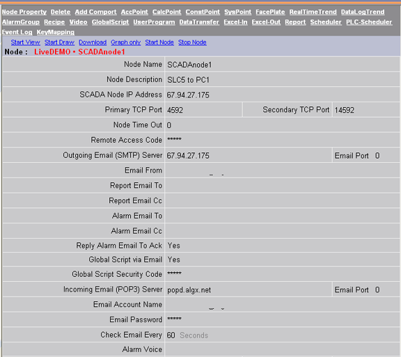 Figure 3.2 SCADA Node Properties page (top half) – bwMAIN.asp see Figure 3.2b below