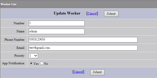 Worker Maintenance builds workers information, such as name, e-mail and phone number. Users can maintain the information. The worker will be assigned to the Worker Group with the same Holiday and Time Group.