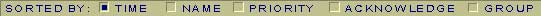 From the Alarm Summary Display, the SORT alarm field indicates how alarms are sorted: by Time (default), Name, Priority, Acknowledge Status and Alarm Group.